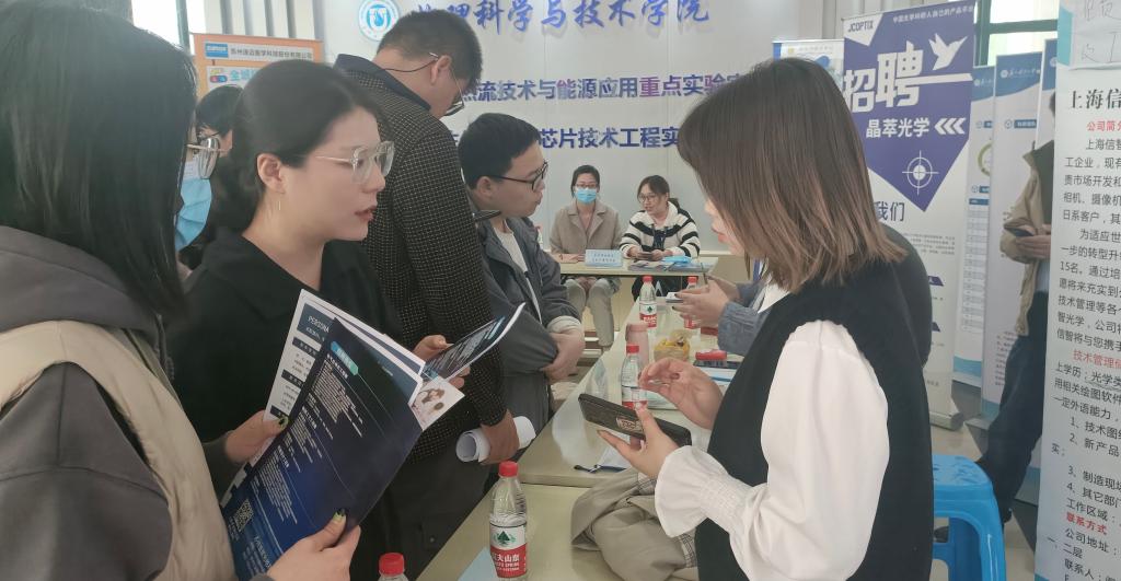 本次招聘会共邀请12家优质用人单位参加,提供了包含光学工程师、研发工程师、测试工程师等岗位,与应用物理学、光学工程等物理学专业对口性强。现场气氛热烈,物理学院2023届共计157名毕业生陆续来到现场,向用人单位投递简历,并与招聘人员进行沟通交流,详细咨询了公司情况、岗位信息、薪资待遇、工作内容及未来发展等相关情况。
