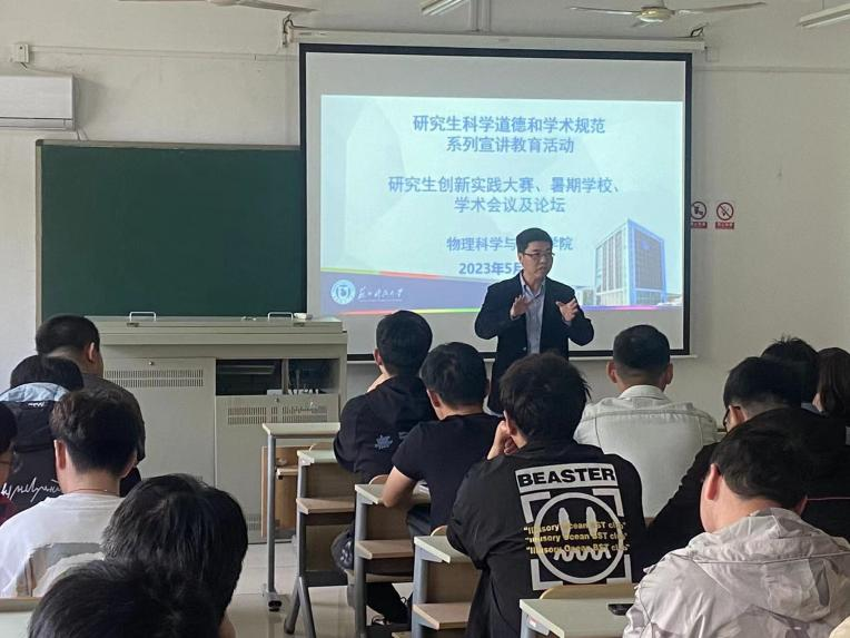 为了进一步加强我院研究生学术规范教育和激发研究生创新实践的活力,2023年5月8日下午,在逸夫楼224教室,物理科学与技术学院面向全体研究生举行“2023年研究生创新实践活动宣讲及动员会,会议由副院长郝翔主持。