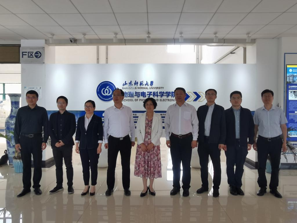 按照学校学习贯彻习近平新时代中国特色社会主义思想主题教育安排,切实加强调查研究,强化服务效能,提升优化服务育人水平,5月22日-23日,williamhill英国党委书记吴泉英、院长马春兰等一行5人赴山东师范大学物理与电子科学学院开展调研学习,实地走访科研实验室、师生办公室、团校工作室等,并围绕高质量党建、学科建设、师资队伍、教学科研、就业及国际化工作等内容召开调研座谈交流会。山东师范大学党委常委、副校长、物理与电子科学学院院长蔡阳健及物理与电子科学学院相关负责人出席座谈交流会。