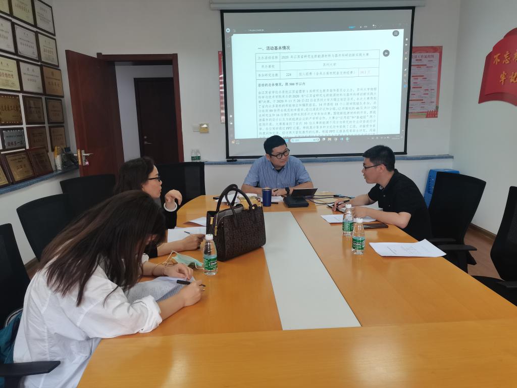 座谈会上,郝翔介绍了学院在研究生科研训练与研究生学科竞赛方面的一些亮点成果。杭志宏重点介绍了苏州大学在研究生科研创新实践大赛方面的成功经验。双方就2023年江苏省新材料设计研究生科研创新实践大赛的筹备工作进行了深入交流,并进一步讨论了大赛组织方案。