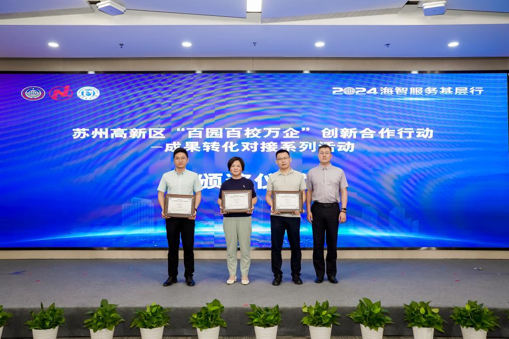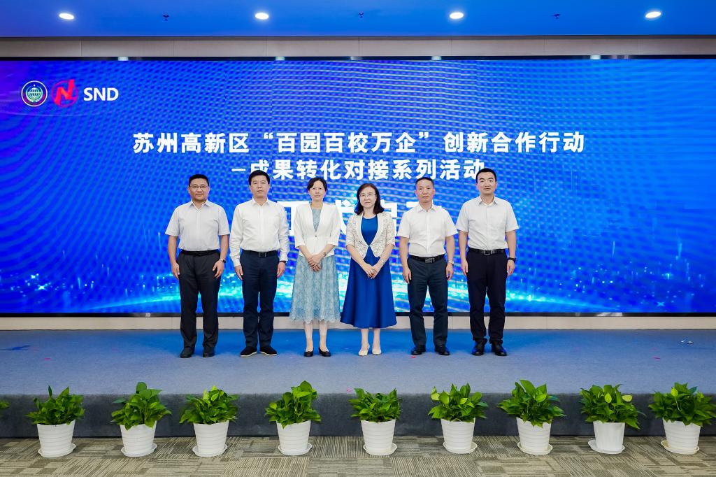 为促进教育、科技、产业深度融合,推动国家高新区和高校高水平合作,服务企业创新发展,工信部、教育部和科技部联合组织开展“百园百校万企”创新合作行动。顾菊平校长、程波书记、吕建林部长、温波副校长、刘俊副局长、王正宇总经理,共同参加苏州高新区“百园百校万企”创新合作行动——成果转化对接系列活动启动仪式。