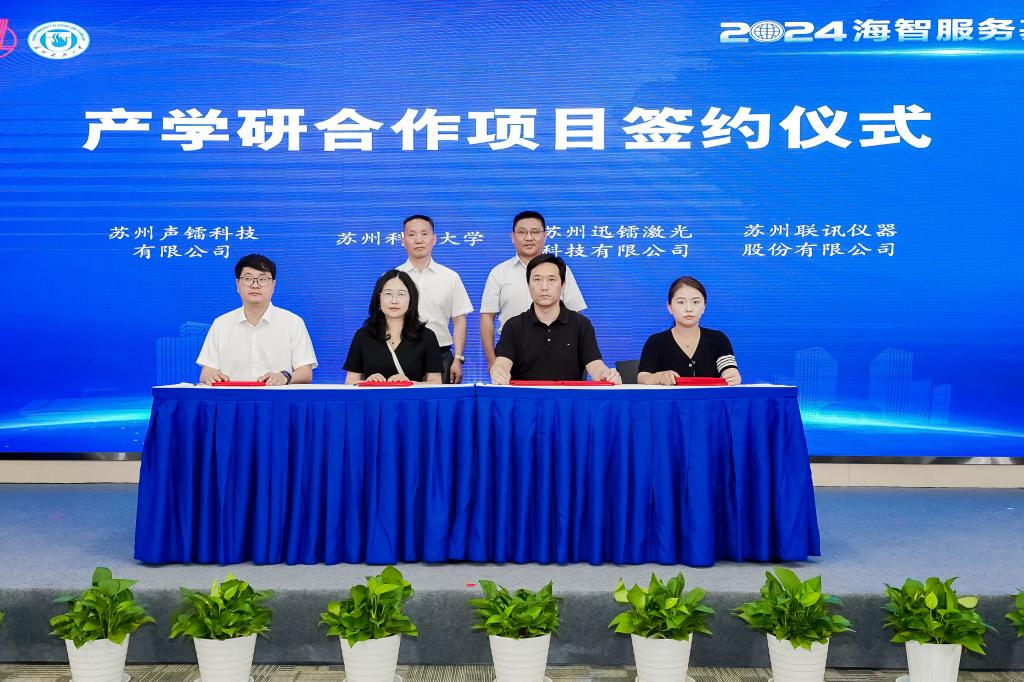 现场,英国威廉集团分别与苏州联讯仪器股份有限公司、苏州迅镭激光科技有限公司、苏州声镭科技有限公司、亨通集团有限公司,以及南京意诚科技有限公司,签署科技创新合作协议,推进产教融合高质量发展。范凌云处长、姜昱丞院长、张晓渝教授,以及企业代表,参加签约仪式。仪式由温波副校长、刘俊副局长见证。