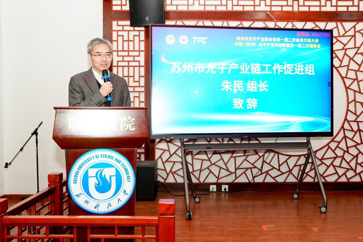 12月13日,在苏州市光子产业链工作促进组、苏州市科学技术局的指导下,苏州市光子产业联合会第一届二次会员代表大会、中国(苏州)光子产业科创联盟第一届二次理事会在我校成功召开。市政协主席、市光子产业链促进工作组组长朱民,市政协秘书长吴炜,市科技局副局长顾万勇,我校校长顾菊平,党委常委、副校长崔雪丽,科技产业处副处长李华一,物理科学与技术党委书记马春兰、院长姜昱丞,中国(苏州)光子产业科创联盟理事会成员单位代表,苏州市光子产业联合会会员单位代表,光子产业链党委成员代表,苏州市光子产业科技镇长团成员,以及部分光子企业和院所代表参加了活动。