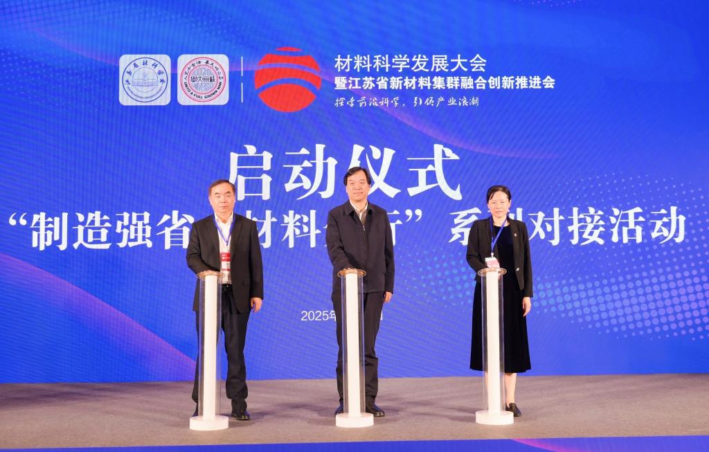4月26日,2025材料科学发展大会暨江苏省新材料集群融合创新推进会在苏州高新区开幕。校长顾菊平出席开幕式并启动科技创新对接活动。中国科学院院士施剑林、陈学思,省工信厅厅长朱爱勋,省科协副主席冯少东,苏州市副市长毛伟等领导和嘉宾出席。