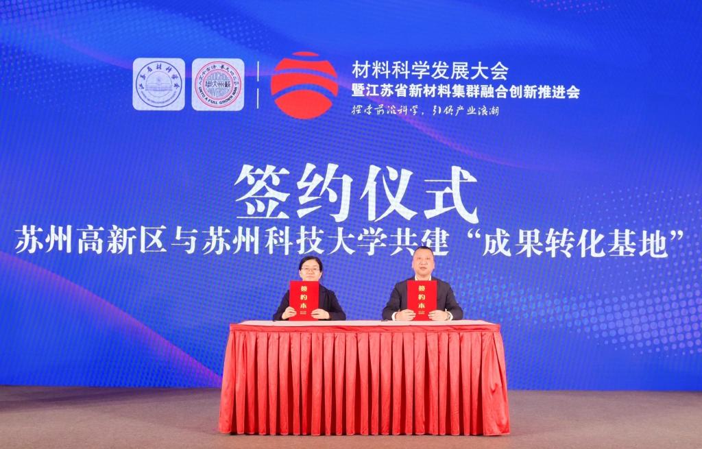 开幕式上,校长顾菊平与省工信厅厅长朱爱勋、苏州大学党委书记张晓宏共同启动“制造强省·材料先行”系列对接活动,将通过精准化对接进一步助推全省材料产业发展和技术创新。物理学院党委书记马春兰与苏州高新区管委会副主任沈琰签署“产学研成果转化基地”协议,将深化我校与高新区政府在新材料技术研发和成果转化方面的合作。