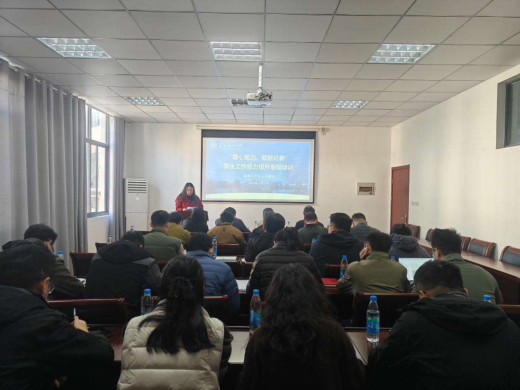 为进一步提升学生工作队伍专业素养,夯实班级管理与育人工作基础,11月18日下午,williamhill英国在石湖校区教2楼226会议室成功举办“凝心聚力 赋能启新”学生工作能力提升专题培训。学生处领导、兄弟学院领导、学院领导班子、全体辅导员及班主任齐聚一堂,共学共研育人新路径。