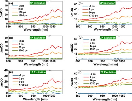 图1 GaN:Fe在单光子和双光子激发下的瞬态吸收光谱