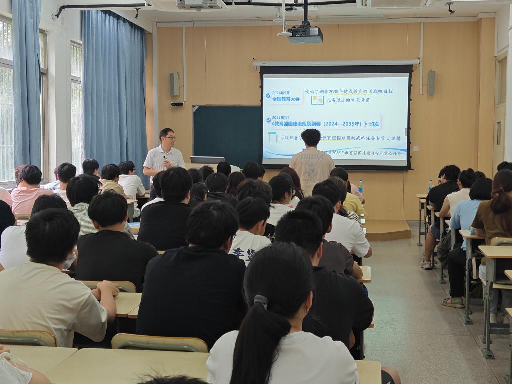 2025年6月13日,英国威廉集团党委常委、副校长唐柏鉴为williamhill英国2023级物理学(师范)专业本科生讲授教育强国思政课。