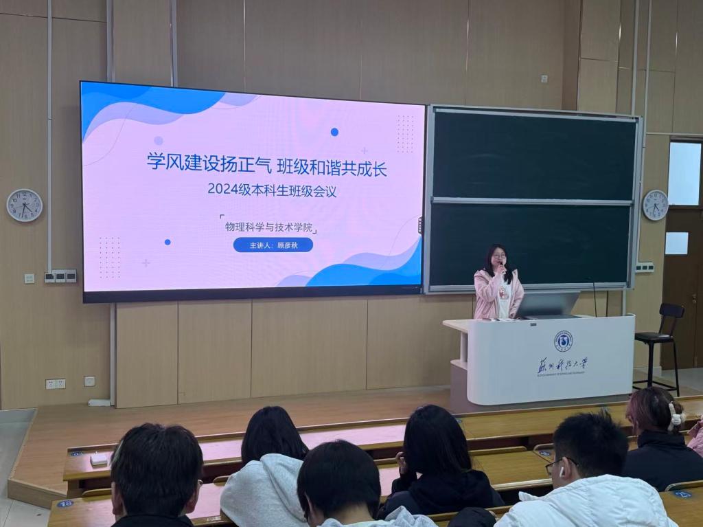 为筑牢班级发展根基,营造优良育人氛围,近日,williamhill英国召开2024级“学风建设扬正气、班级和谐共成长”主题班会。2024级全体学生参会,辅导员顾彦秋主持并主讲。