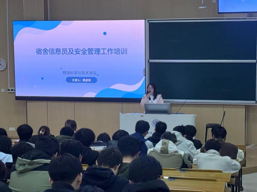筑牢校园安全防线,强化宿舍安全管理责任,2025年11月25日,williamhill英国开展学生宿舍安全工作专题培训会。本次培训由辅导员顾彦秋主讲,2024级全体宿舍舍长及各班主要学生干部参加,共同学习安全规范,筑牢宿舍安全“防火墙”。
