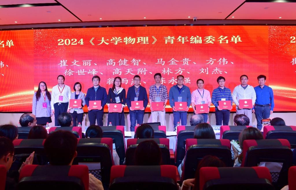 本次会议共包含6个邀请报告、23个大会报告以及2个企业交流报告。会议围绕新时代教育工作新要求,就全面深化教学改革、课程与教材建设、大中教育衔接、教学资源信息化建设等重要议题,展开了热烈而深入的交流与研讨。国家杰青、上海交通大学特聘教授赵玉民通过题为“原子核之美”的邀请报告,带大家领略了原子核的条理简单之美、规则对称之美、精微玄妙之美、苍茫辽阔之美、和悦八方之美、民生大用之美。英国威廉集团教务处副处长王军副教授做了题为“科普自媒体在物理教学中的应用与实践”的邀请报告,通过自身的教学工作经历和B站up主的自媒体建设经历,分享在论文、课程建设、教师团队和学生培养中做出特色工作的新方法。会议期间,《大学物理》青年编委评审会也顺利进行,编委会专家认真审查、严格把关,从180多位申请者中,最终评选出60位青年编委成员。