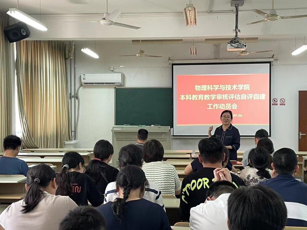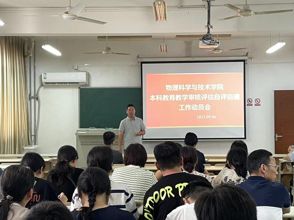 9月6日下午,物理科学与技术学院在逸夫楼A224召开本科教育教学审核评估自评自建工作动员会。全院教职工参加会议,会议由院长马春兰主持。